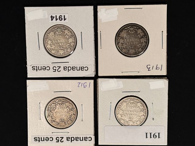 Lot # 194 - 4 Pièces de 25 Cents 1911-1912-1913-1914 en Argent .925