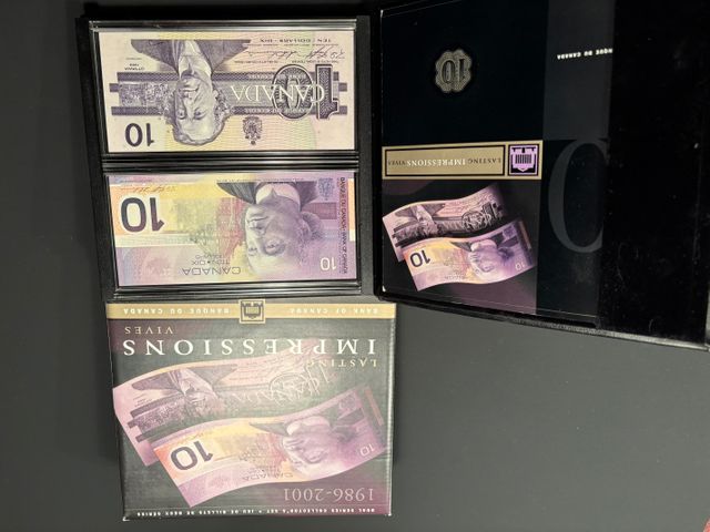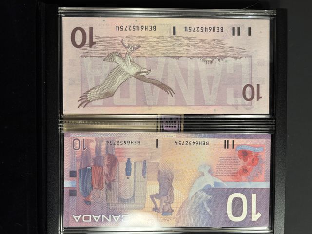 Ensemble de 2 Billets de $10 1986 et 2001 (2 séries différentes avec le même numéro de série)