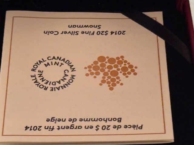 Pièce colorée de $20 2014 plus d’une once d’Argent pur  Bonhomme de Neige  (pas de taxe)