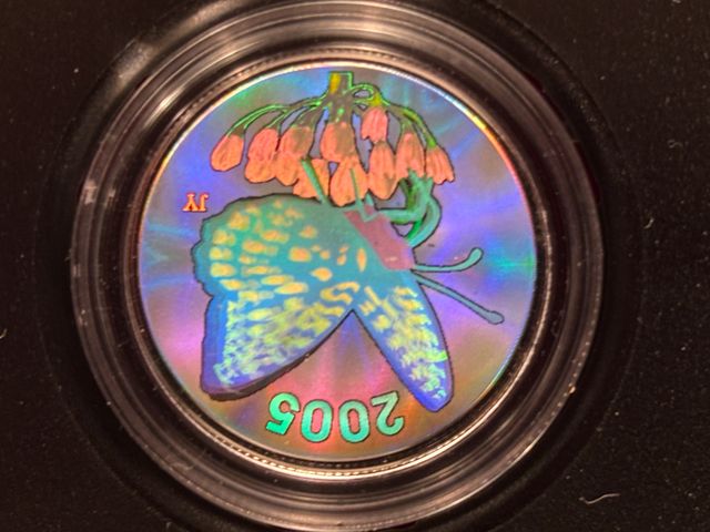 Lot # 167 - Pièce de 50 Cents 2005 en Argent avec Hologramme en couleur Série des Papillons