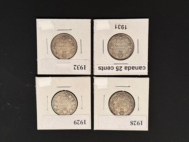 4 Pièces de 25 Cents 1928-1929-1931-1932 en Argent