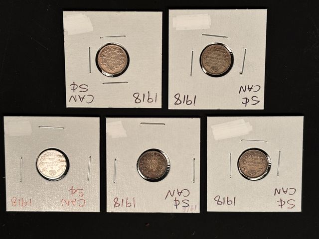 Lot # 176 - 5 Pièces de 5 Cents 1918 en Argent .925