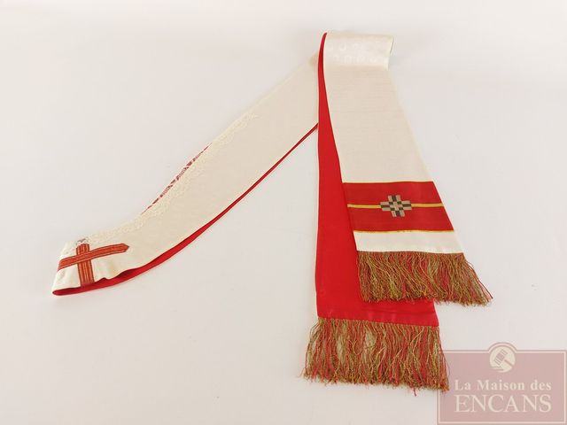 Lot # 88 - Lot de deux chasubles en pure soie datant d'avant Vatican II ainsi qu'une aube ancienne SOLD