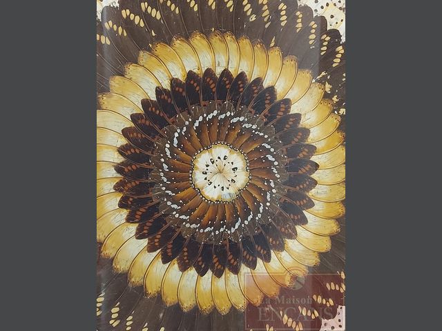 Lot # 218 - Superbe tableau fait d'ailes de papillons - travail minutieux - mesurant 15x15 pouces VENDU