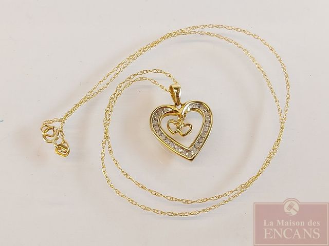 Lot # 117 - Pendentif cœur en or 10k et sertie de diamants véritables mesurant 18x18mm avec sa chaine en or mesurant 18 pouces SOLD