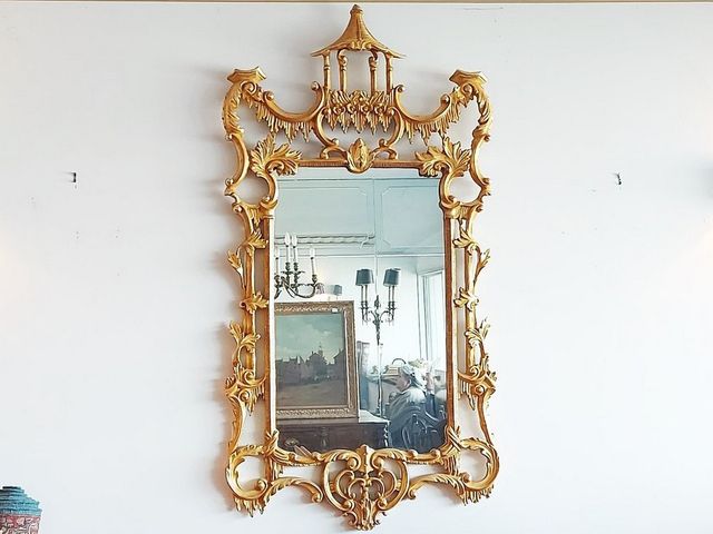Lot # 23 - Miroir de style oriental ancien en bois doré mesurant 55 pouces de hauteur – avec motifs floraux SOLD