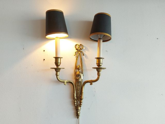Lot # 71 - Jolie paire d’appliques murales de style Louis XVI ,électrifiées en bronze doré et mesurant 18 pouces de hauteur   SOLD