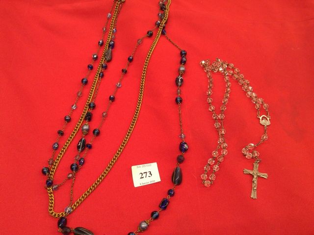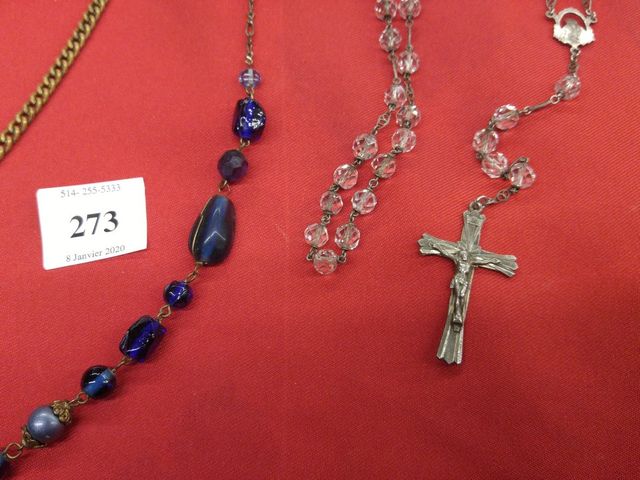 Lot # 273 - Chapelet en crystal de roche circa 1940, et un autre de pierres semi-précieuses. CANCELLED