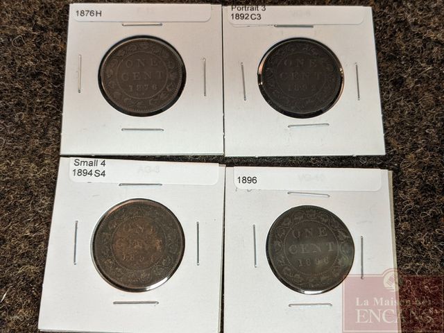Lot # 242 - Lot de 4 x 1 cent victorienne de 1876H, 1892 portrait 3, 1894 petit 4 et 1896 VENDU