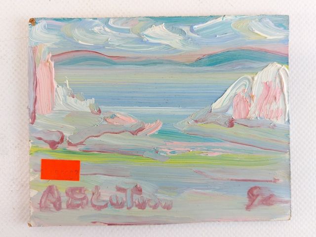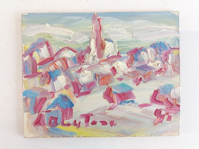 Lot # 39 - Alban BLUTEAU - Un lot de cinq huiles sur panneaux signées mesurant 4x5 pouces SOLD