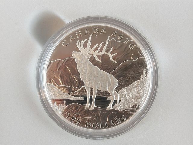 Lot # 190 - Pièce de 100 dollars en argent pur .9999 de 2016 - Le Wapiti - sans taxe SOLD
