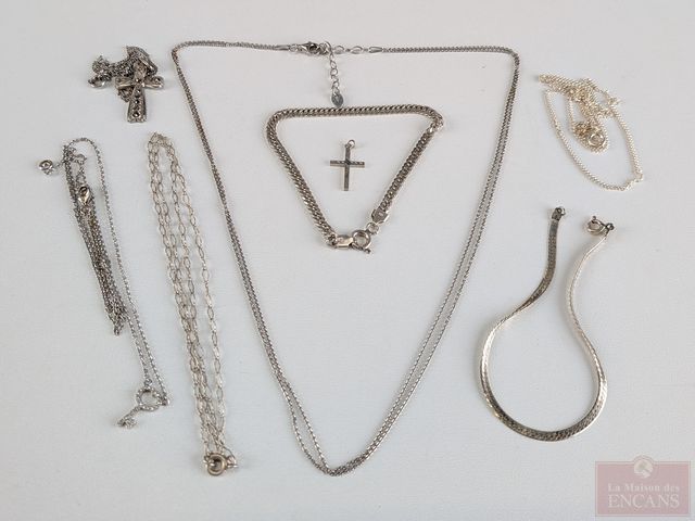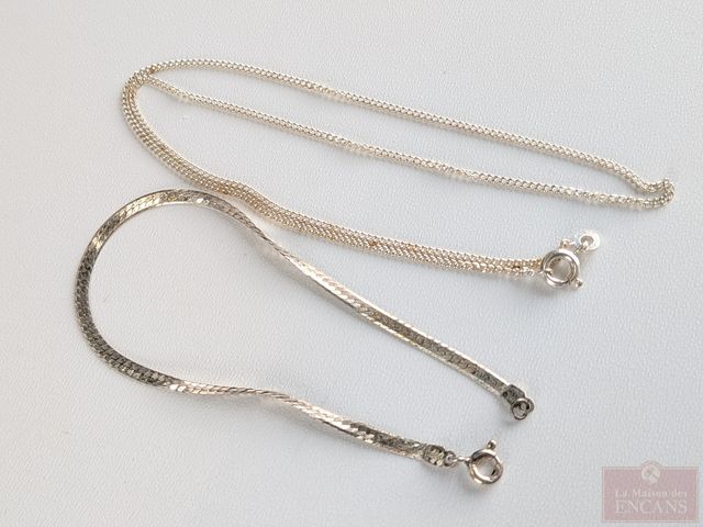 Lot # 228 - Lot de chaines et bracelet en argent, la plus grande chaine mesurant 16 pouces de longueur SOLD