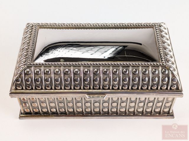 Lot # 192 - Coffre à bijoux en métal avec intérieur en velours bleu, mesurant 7 pouces de largeur SOLD