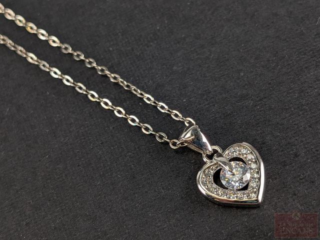 Lot # 237 - Chaine et pendentif en argent sterling serti de pierres, la chaine mesurant 18 pouces de longueur SOLD