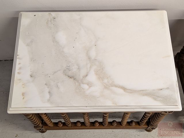 Lot # 29 - Jolie paire de table d'appoint de style jacobin en bois de noyer avec dessus de marbre à double biseaux, circa 1940, mesurant 21.5x15x17.5 pouces chacune et en excellente condition