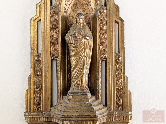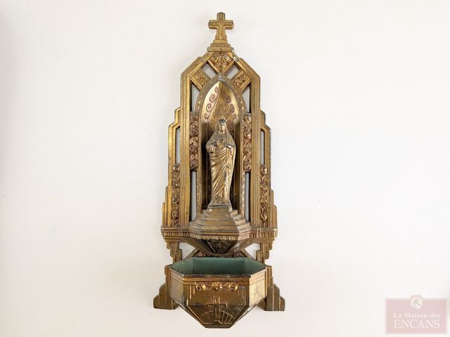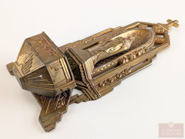 Lot # 63 - Bénitier mural en métal, fait en France circa 1900 et mesurant 9 pouces