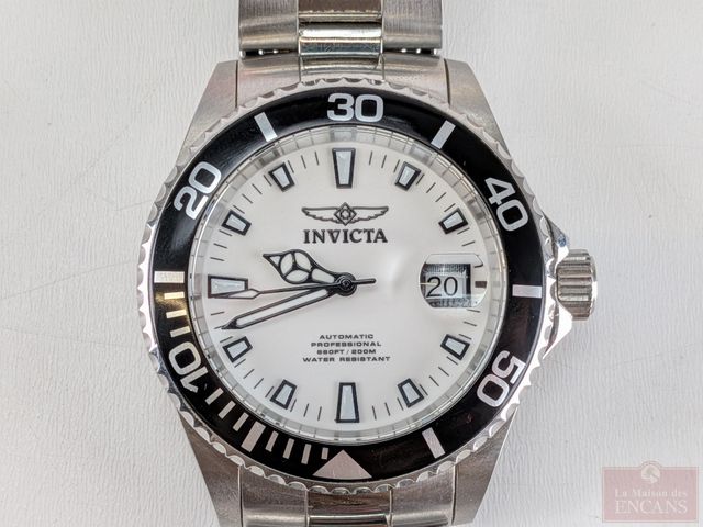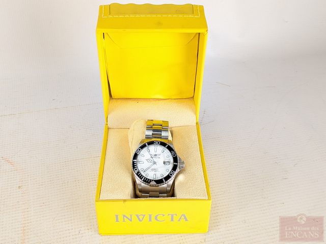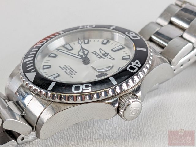 Montre Invicta en acier inoxydable, mouvement automatique avec date, cadran unidirectionnel, mesurant 47.4 millimètres avec sa couronne signée et vissée, dans sa boite d'origine, fonctionnelle