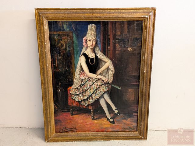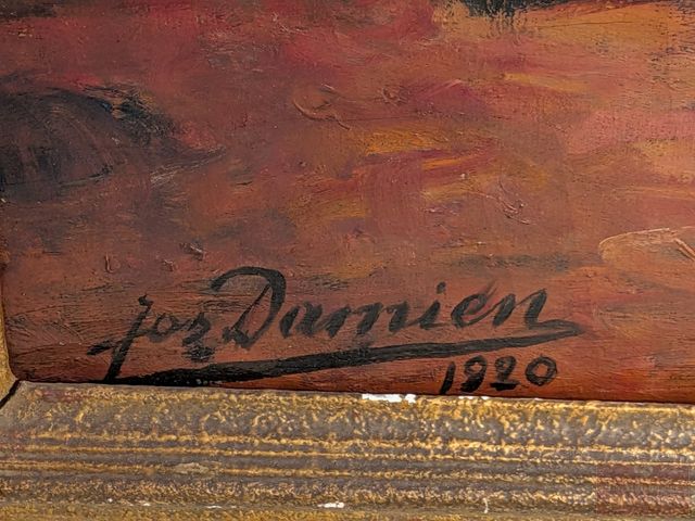 Lot # 51 - DAMIEN- Huile sur toile signée, mesurant 31x24 pouces