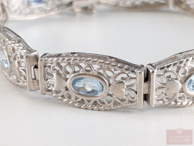 Bracelet en argent mesurant 7 pouces de longueur (une des attaches de sécurité à réparer)