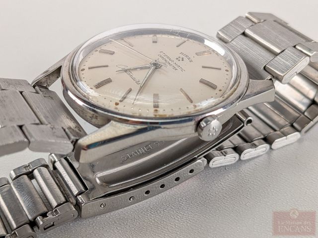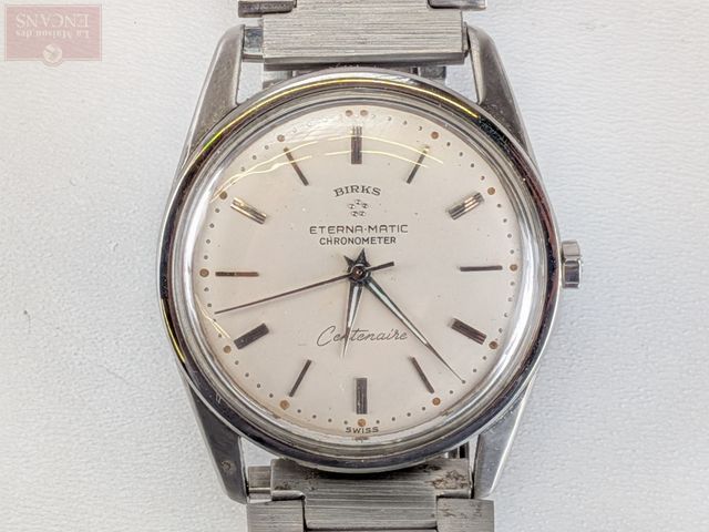 Montre Birks Eternamatic chronomètre en acier inoxydable, mouvement automatique mesurant 36 millimètres avec sa couronne, fonctionnelle