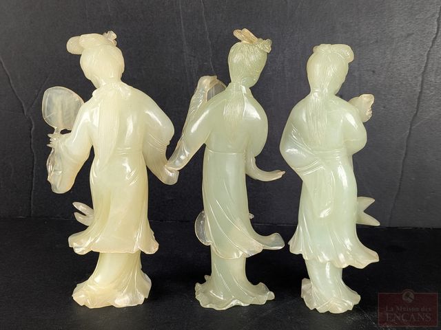 Lot # 81 - Trois figurines orientales sculptées sur pierre, mesurant 6 pouces de hauteur chacune