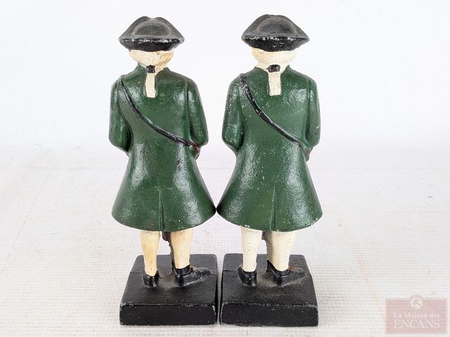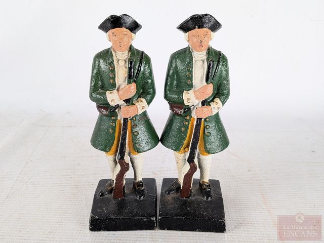Paire de soldats de la guerre de sécession en fonte, peints à la main et mesurant 7 pouces de hauteur
