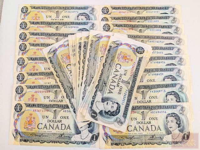 Lot # 90 - Lot de billets canadiens d'un dollar 1973