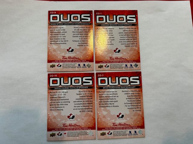 Lot # 238 - Quatres cartes de hockey hologrammes DUOS ,équipe Canada 2025-2026 SOLD