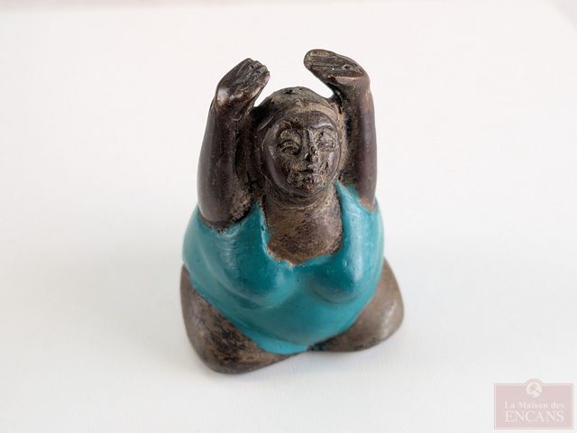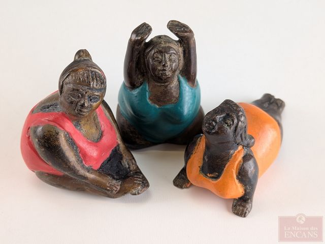 Trois bronzes dans le style de Botero, la plus grande mesurant 2.5 pouces de hauteur
