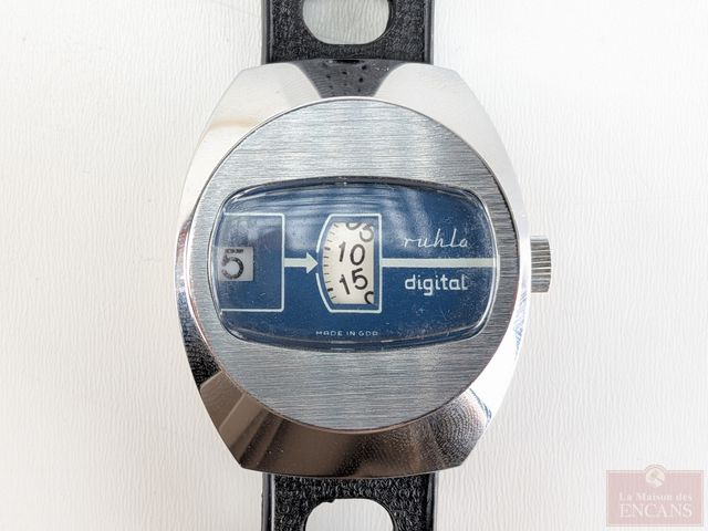 Lot # 94 - Montre allemande Ruhla en acier inoxydable, mouvement mécanique à remontage manuel mesurant 37.8 millimètres avec sa couronne (mouvement à réviser)