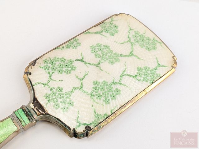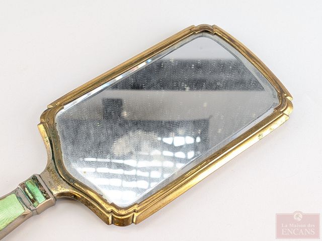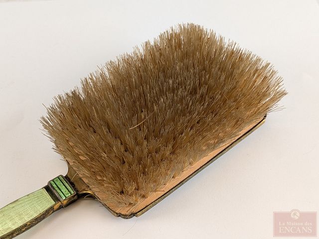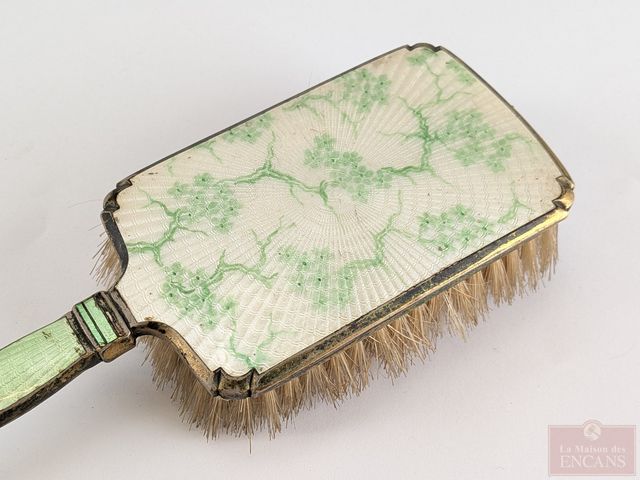 Lot # 24 - Ancien ensemble de beauté en laiton guilloché, circa 1900, comprenant peigne, brosse et miroir mesurant 14 pouces