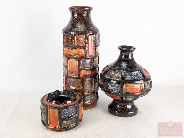 Lot # 5 - Lot de trois vases mid-century en céramique, le plus grand mesurant 15 pouces de hauteur
