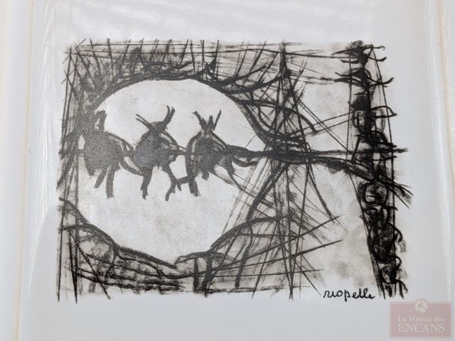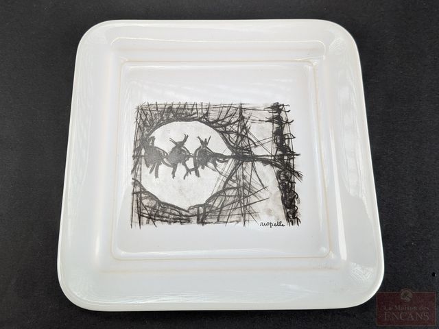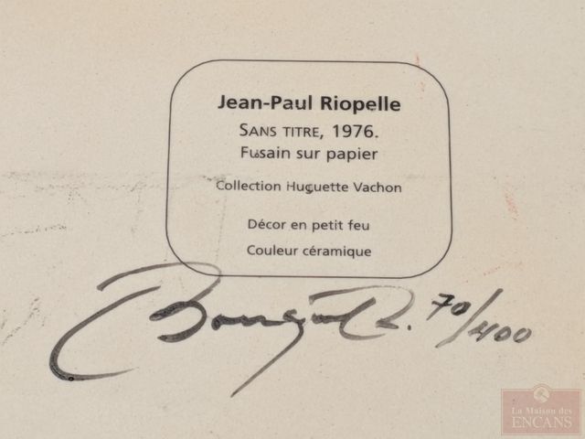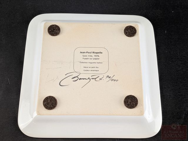 Lot # 183 - Assiette Jean-Paul Riopelle en céramique, collection Huguette Vachon, signée par Louise Bousquet, numérotée et mesurant 5.5x5.5 pouces SOLD