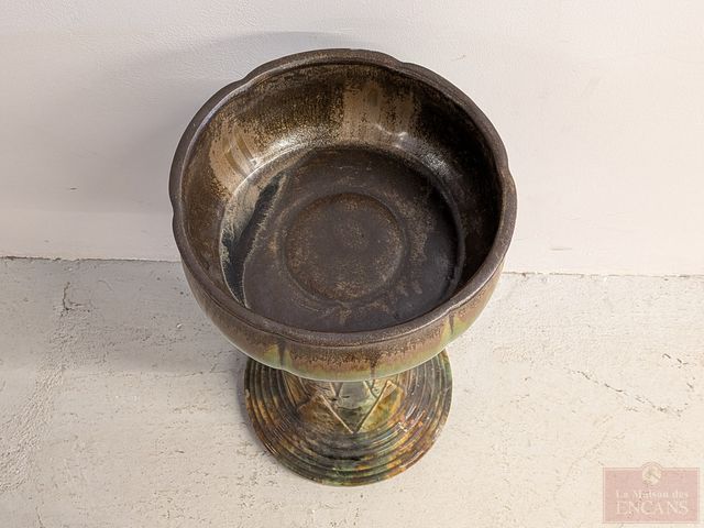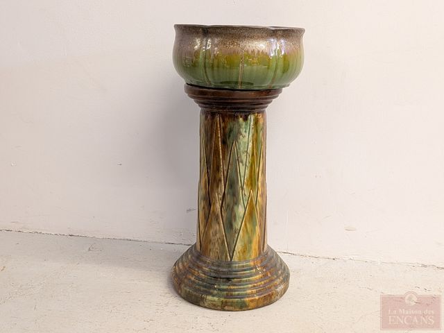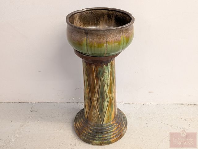 Lot # 168 - Jardinière et socle art-déco Majolica en céramique, datant des années 1930 et mesurant 22 pouces de hauteur au total SOLD