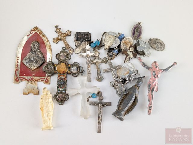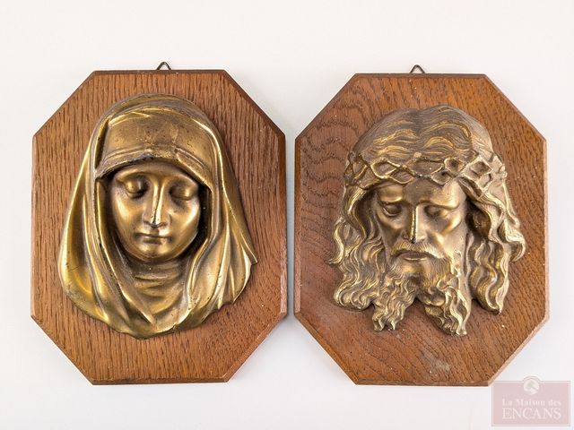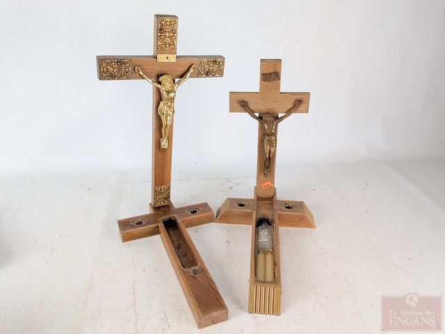 Lot # 126 - Lot religieux comprenant bible, appliques murales et crucifix mesurant 13 pouces de hauteur SOLD