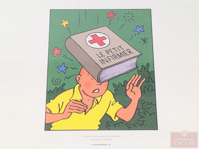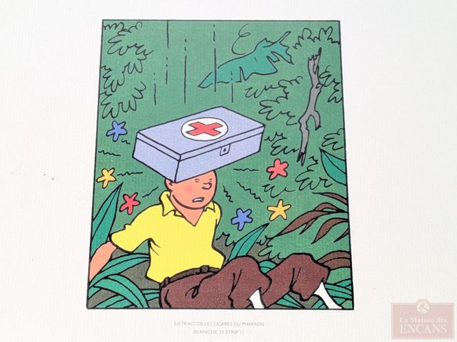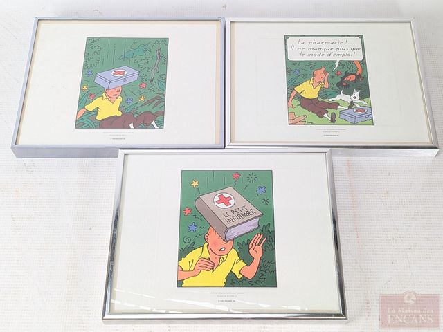 Lot # 142 - Trois lithographies officielles de Tintin, mesurant 5.5x4.5 pouces chacune SOLD