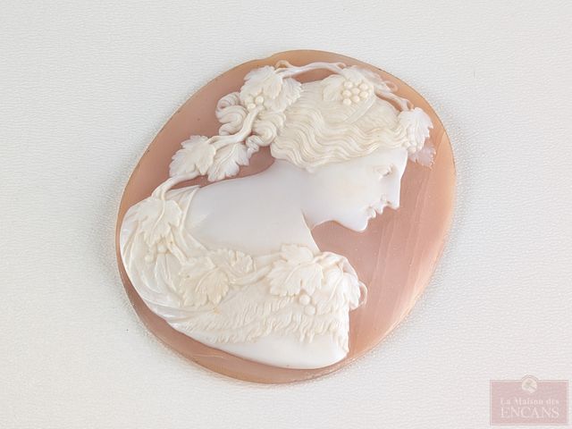 Camée sculpté sur coquillage, datant du 19eme siècle et mesurant 2.25 pouces de hauteur