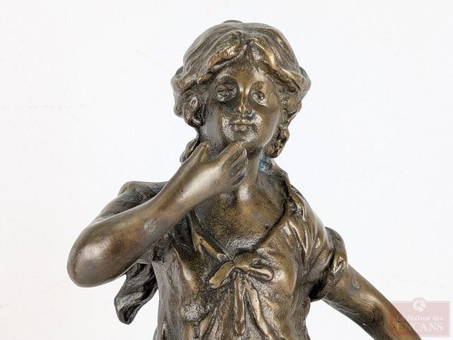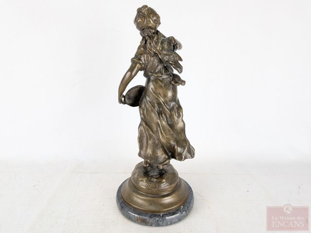 Lot # 15 - Bronze signé Moreau et mesurant 14 pouces de hauteur, sur sa base en pierre mesurant 0.75 pouces SOLD