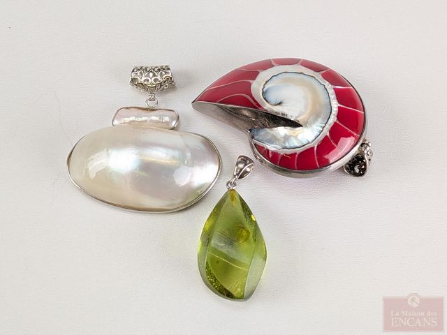 Lot de trois pendentifs en argent, le plus grand mesurant 2.5 pouces de hauteur