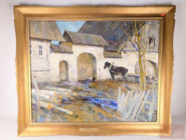 Peter TIMOFEEVIC (1919-1996) - Huile sur toile signée, mesurant 28x35 pouces et titrée Près d'Irkoutsk
