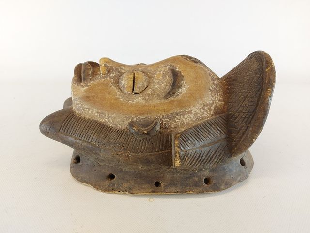Lot # 175 - Masque africain sculpté sur bois ancien mesurant 12 pouces de hauteur SOLD