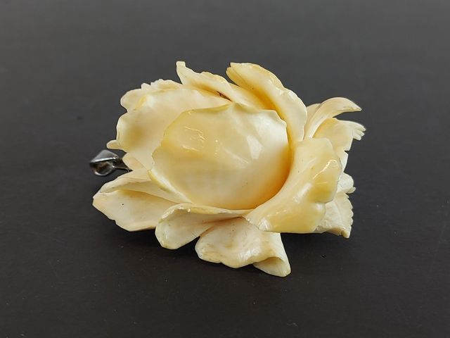 Lot # 39 - Broche pendentif sculptée sur ivoire avec attache en argent et représentant une rose - mesurant 2.25 pouces - SOLD