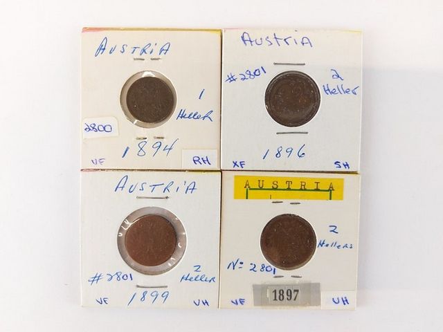 Lot # 221 - Lot de quatres pièces de monnaies autrichiennes anciennes - 1894 - 1896 - 1897 - 1899 CANCELLED