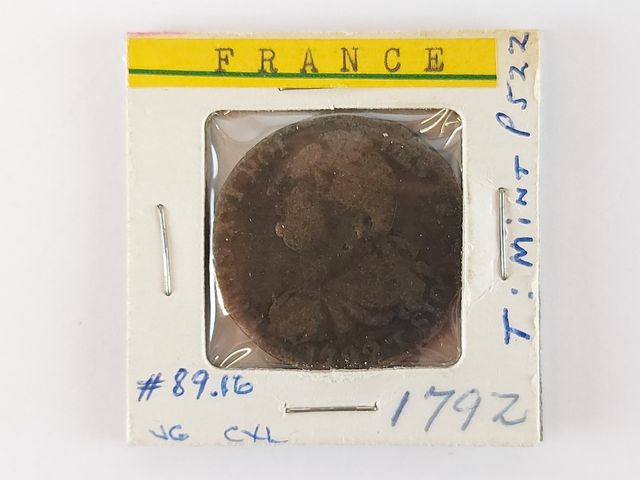 Lot # 218 - Ancienne pièce de monnaie francaise - Louis XVI Roi - 1792 SOLD