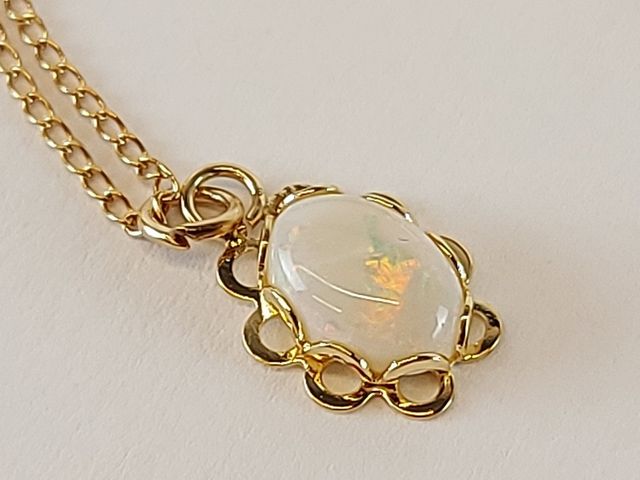 Lot # 214 - Pendentif et chaîne le tout en or 10k serti d'une opale  SOLD