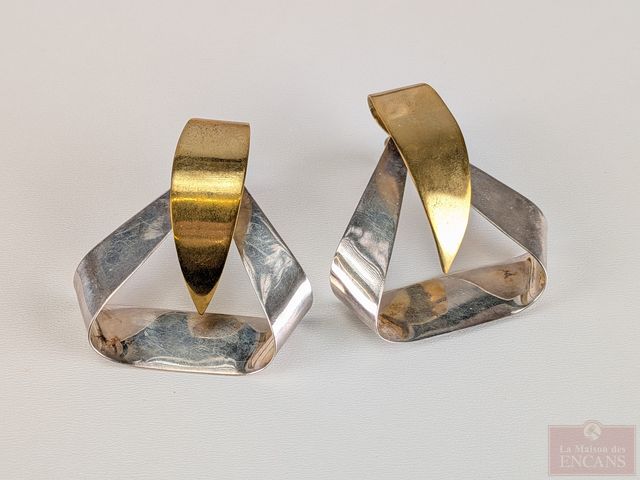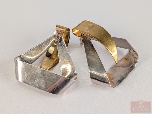 Lot # 87 - Paire de boucles d'oreilles en argent mesurant 2 pouces de hauteur