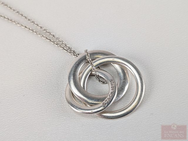 Lot # 77 - Pendentif et chaine en argent Tiffany and Co., la chaine mesurant 18 pouces de longueur, dans sa pochette