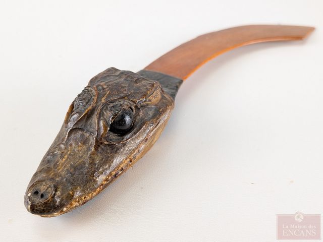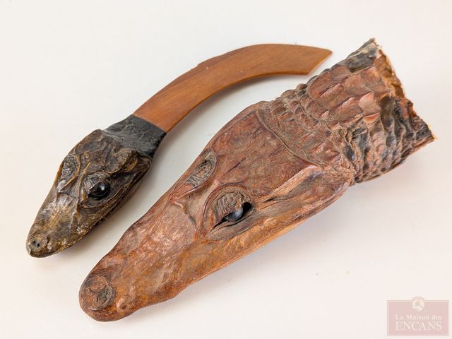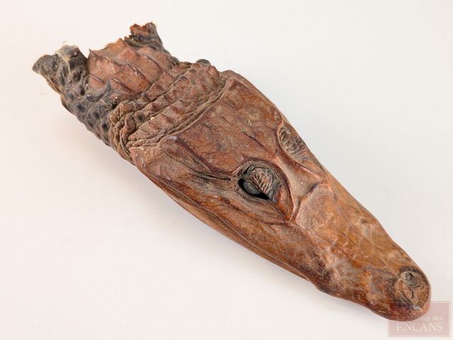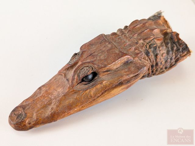 Deux têtes d'alligators naturalisées, la plus grande mesurant 9 pouces de longueur