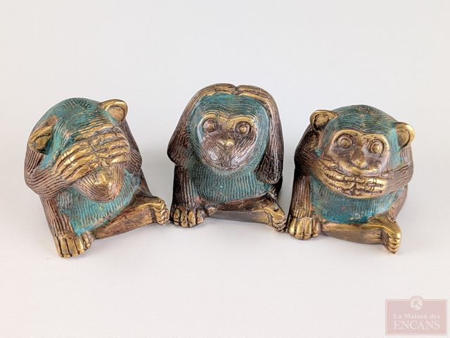Lot # 101 - Trois figurines en laiton représentant les singes de la sagesse, mesurant 2 pouces de hauteur chacun