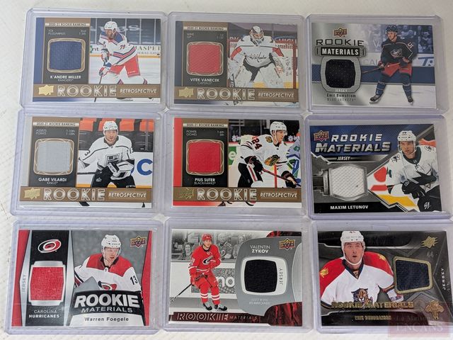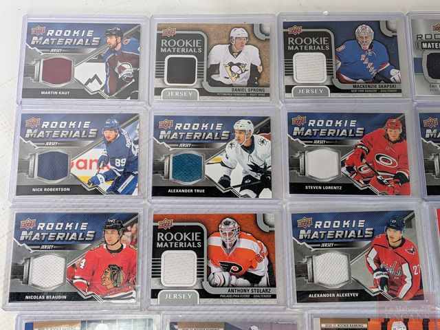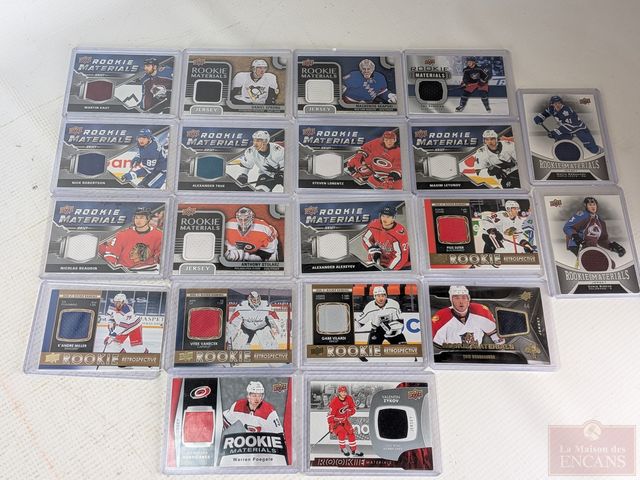 Lot # 106 - Lot de cartes de hockey Upper Deck Rookie Materials avec morceaux de chandails